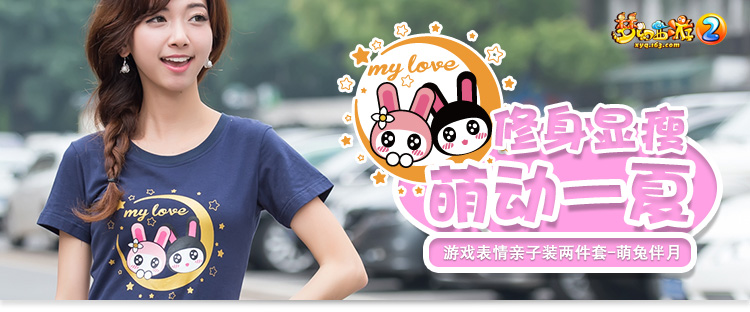 游戏表情亲子装两件套-萌兔伴月