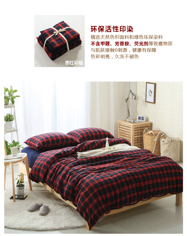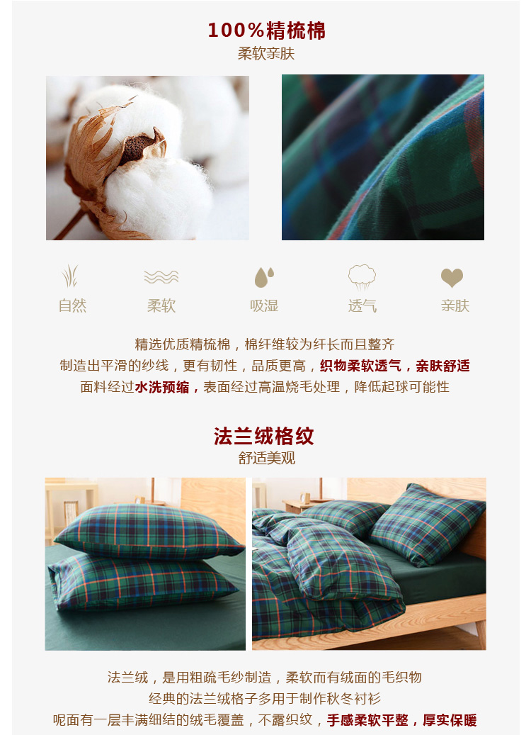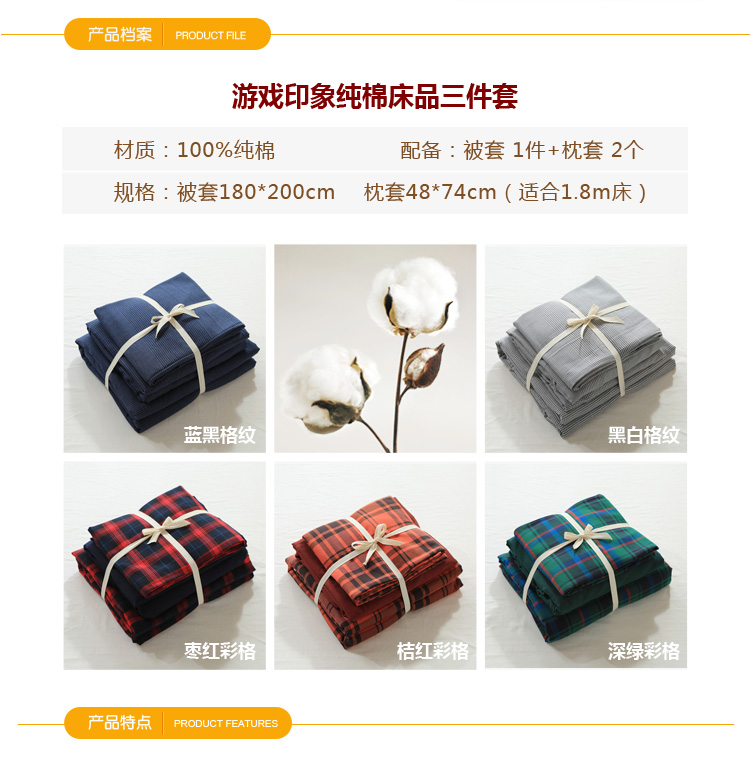 含被套1件+枕套2个,适合1.8m床。精选100%精梳棉,经水洗预缩处理,质感更棉柔亲肤。采用活性印染工艺,不含甲醛、芳香胺、荧光剂等有害物质,贴身的当然要健康舒适。
